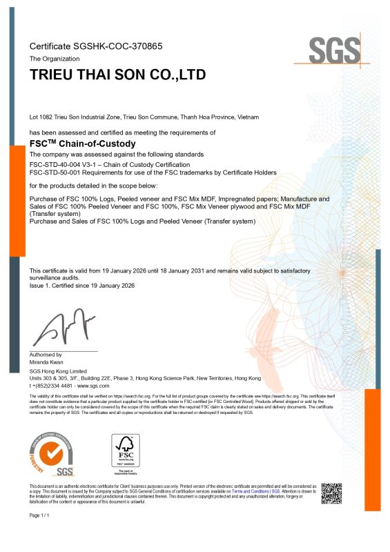 Triệu Thái Sơn là nhà sản xuất và xuất khẩu các sản phẩm gỗ hàng đầu ở Việt Nam. Chúng tôi cung cấp các sản phẩm gỗ dán chất lượng cao cho tất cả Quý khách hàng trên toàn thế giới
